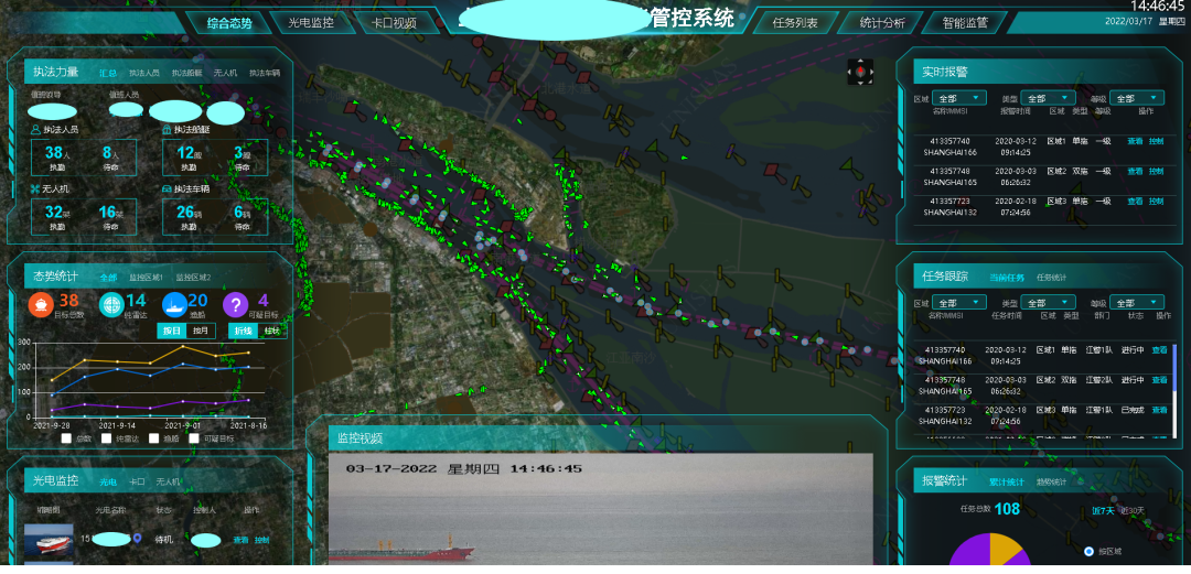 該系統(tǒng)能夠?qū)崿F(xiàn)對海岸港口船只、人、車等目標(biāo)實(shí)時監(jiān)測,通過物聯(lián)網(wǎng)對貨物形成港內(nèi)閉環(huán)監(jiān)管。將海港各類審批流、辦公系統(tǒng)充分融合,完成資源融合,集成“大屏幕”指揮統(tǒng)籌、“中屏幕”協(xié)調(diào)調(diào)度、“小屏幕”一線落實(shí)的“三屏”海港聯(lián)管體系,配合公務(wù)車船和無人機(jī)實(shí)地取證,“空海岸一體”對船、人、車、貨流動鏈條形成完整閉環(huán)巡查取證。