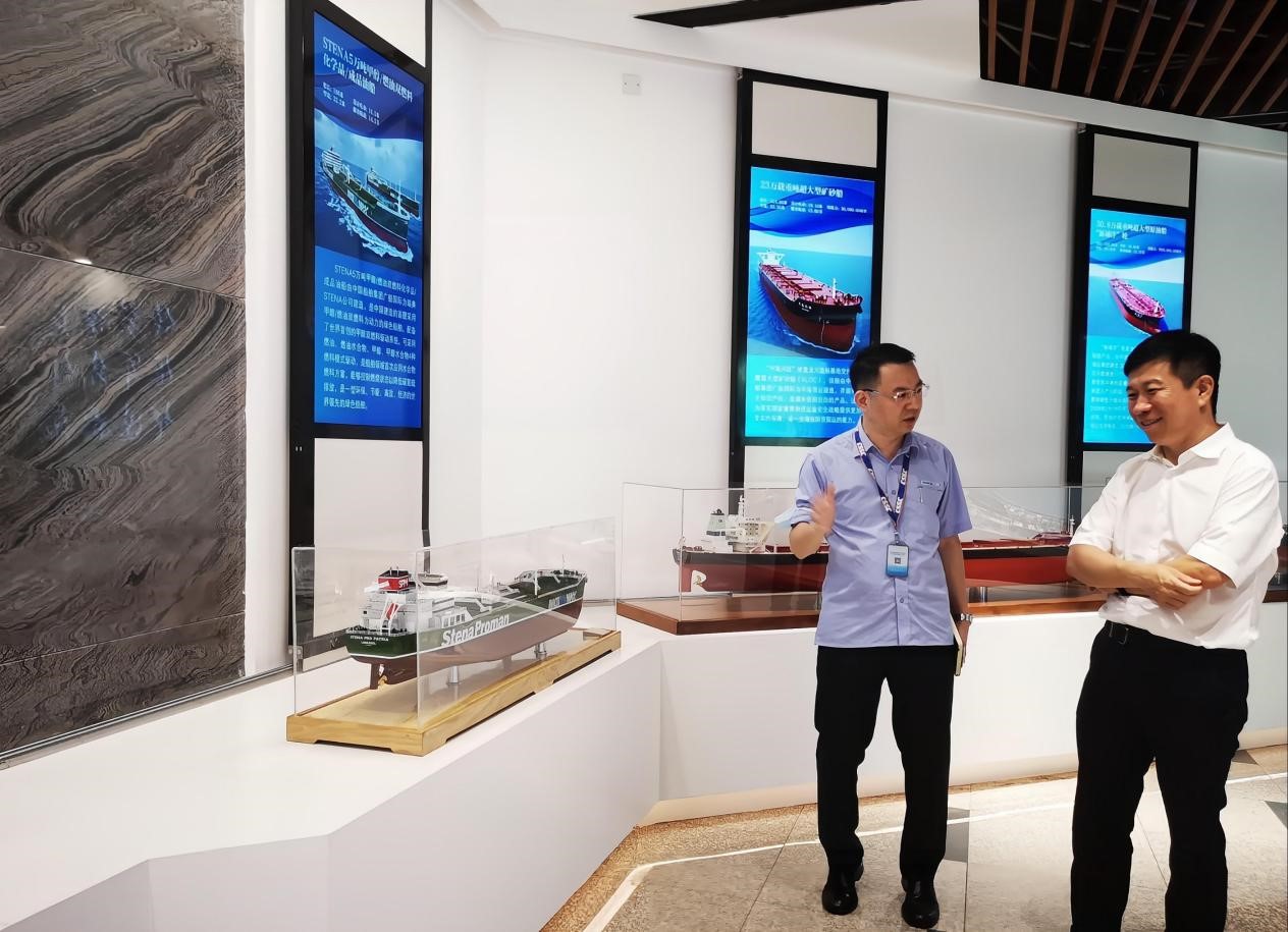 簽約座談會(huì)前,由廣船國(guó)際副總經(jīng)理周旭輝帶隊(duì)參觀公司展館并講解公司發(fā)展歷史。