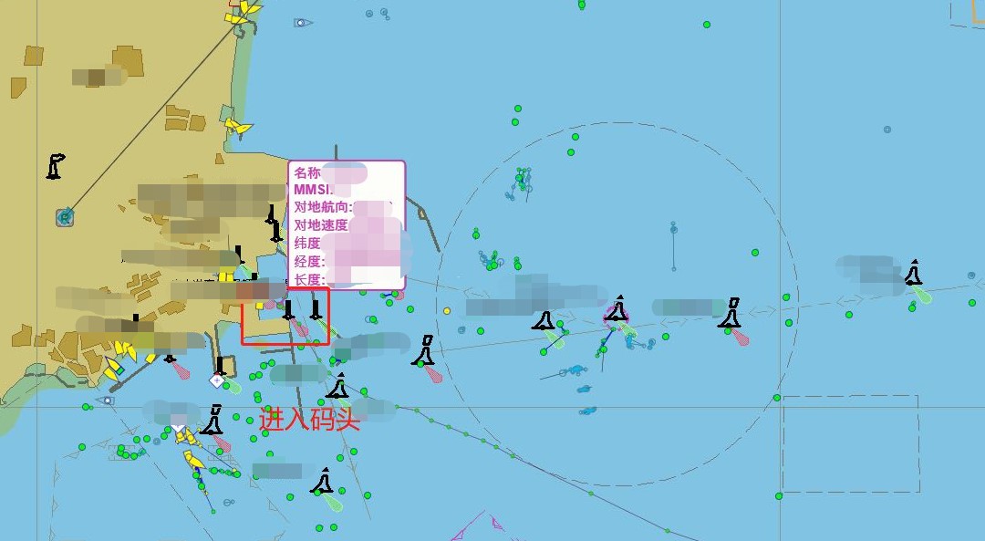 31分鐘之后值班人員報告:系統(tǒng)提示該船只已經(jīng)進入碼頭。請岸上執(zhí)法力量予以配合,具體位置及船只名稱如圖所示。