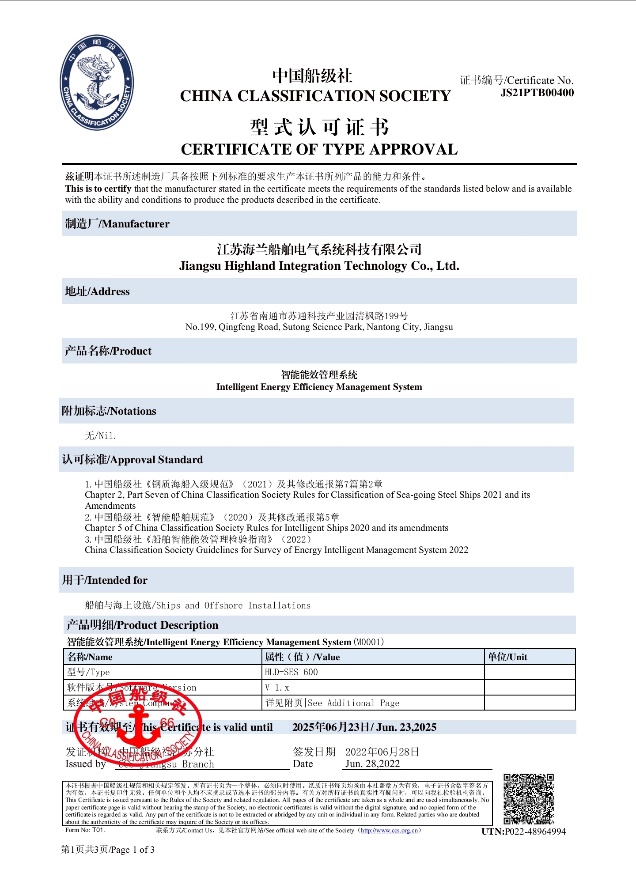 近日,海蘭信成功取得智能能效系統(tǒng)(HLD-SES 600)型式認證,滿足最新CCS《智能船舶規(guī)范2020》及2022修改通告的規(guī)范要求。該系統(tǒng)提供船舶航行和設(shè)備的工況監(jiān)控、全船能耗的分析、以及節(jié)能減排的輔助建議等功能,能夠結(jié)合SEEMP Part Ⅲ船舶營運碳強度計劃,提供CII評級和輔助建議,為用戶提供全面的能效管理服務(wù),促進船舶能效的優(yōu)化。