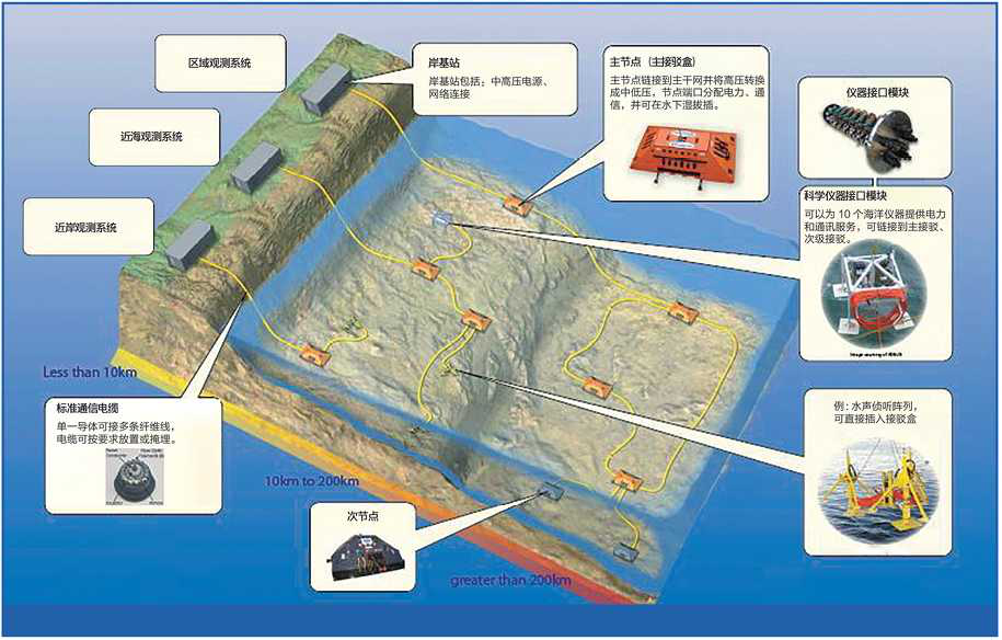 海底觀測網(wǎng)是具備從岸站到深遠(yuǎn)海底的系統(tǒng)化高速通訊與供電的海底原位觀測網(wǎng)絡(luò),經(jīng)過國際海底網(wǎng)十余年實際業(yè)務(wù)化運行檢驗,證明具有高可靠性和實用性,目前已實現(xiàn)國產(chǎn)化并具有完全自主產(chǎn)權(quán)。