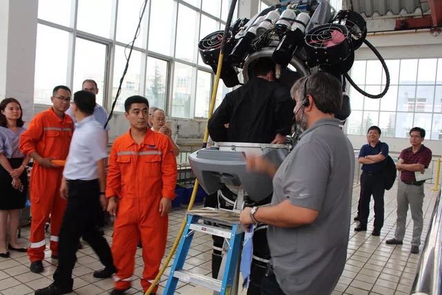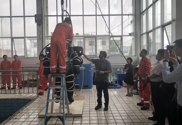會(huì)后,與會(huì)代表在青島太平洋公司潛水員訓(xùn)練場(chǎng)觀摩了ADS常壓潛水系統(tǒng)的下水訓(xùn)練,身臨其境的感受了設(shè)備入水、水下移動(dòng)、穿纜作業(yè)、水下重物吊掛等環(huán)節(jié),并對(duì)該系統(tǒng)的使用體驗(yàn)給予了高度的評(píng)價(jià)。